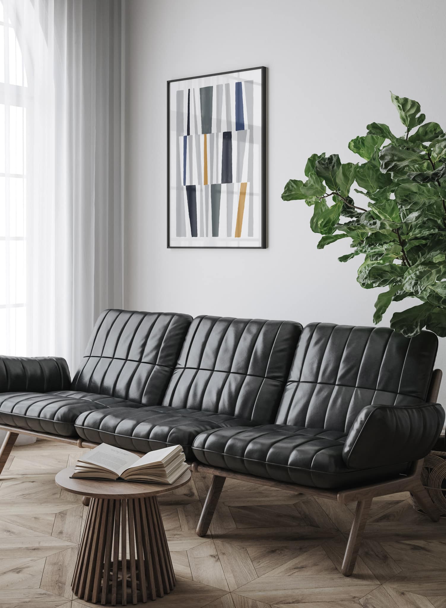 Color is always a good idea, especially when it comes in such a beautiful design! The Harlequin poster is a modern and abstract composition of slanted black shapes combined with fun pops of yellow, blue, orange, and green. The shapes are separated by white sections, which allow this art print to breathe. It’s a must for all lovers of colorful decor.